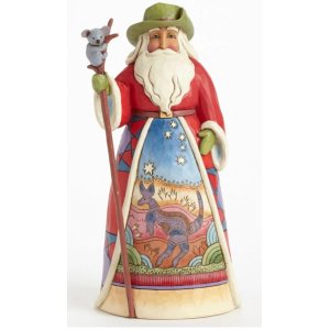 The Santas Around the World collection showcases Christmas traditions from all over the globe. This jaunty Austrailian Santa features iconic images from Down Under including the Southern Cross and a delightful Koala Bear staff.